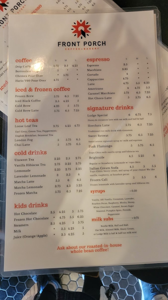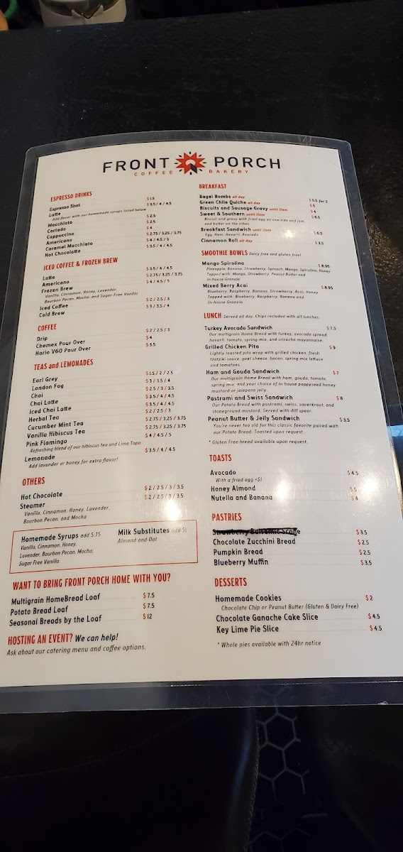 Front Porch Coffee Co. & Bakery Menu (2025 Update)